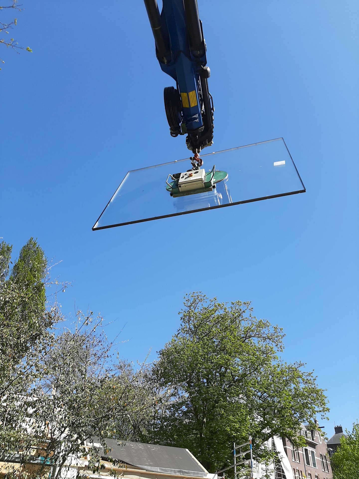 Voor de firma Nijs uit Castricum hebben wij het glas gehesen voor het koffiehuisje in het Vondelpark.